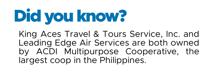 Book exclusively through King Aces Travel and Tours Service. For inquiries and more details, please contact these numbers: